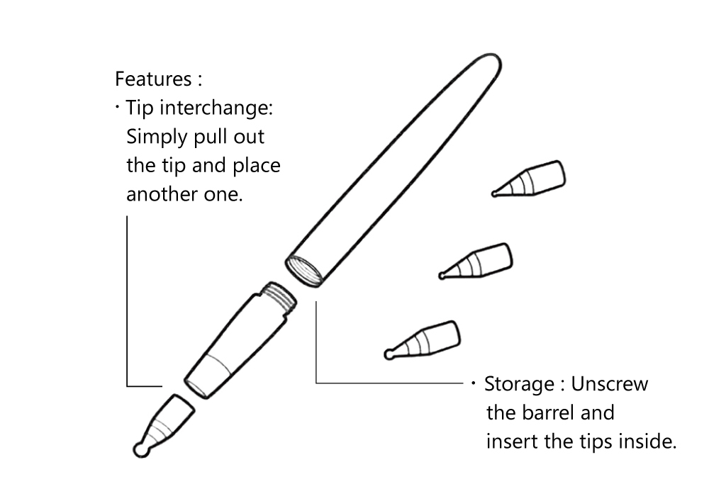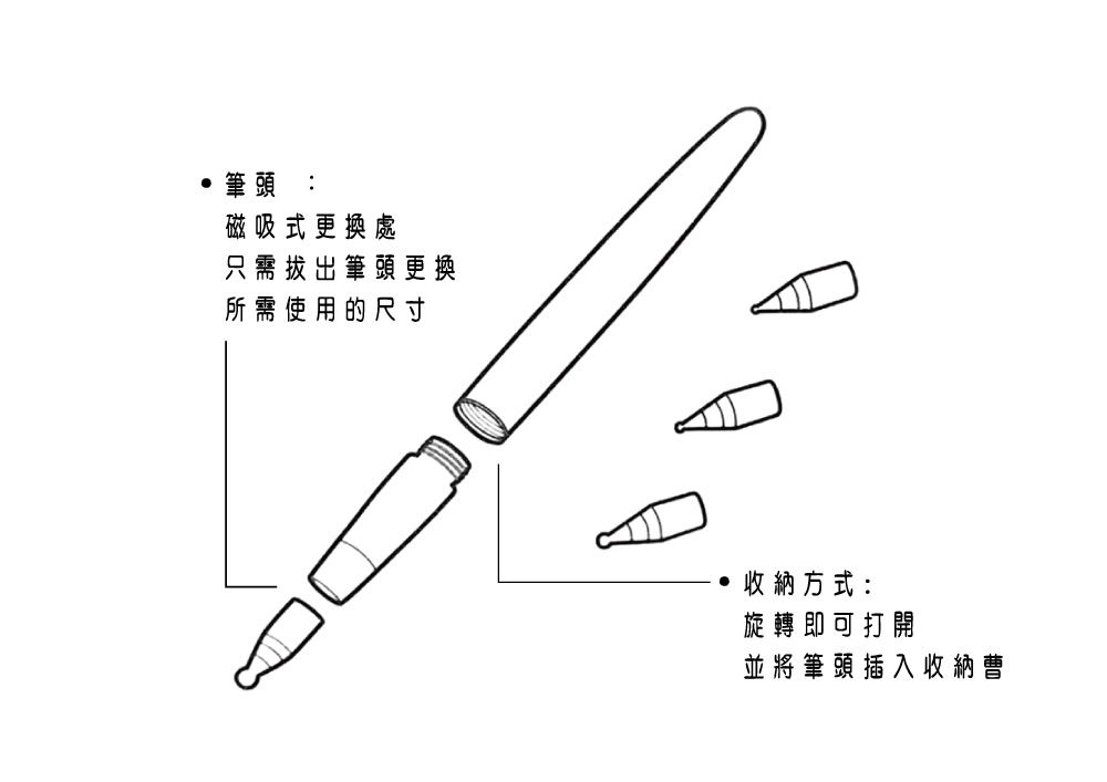 .內含4種筆頭:0.5mm、4mm、5mm、6mm。