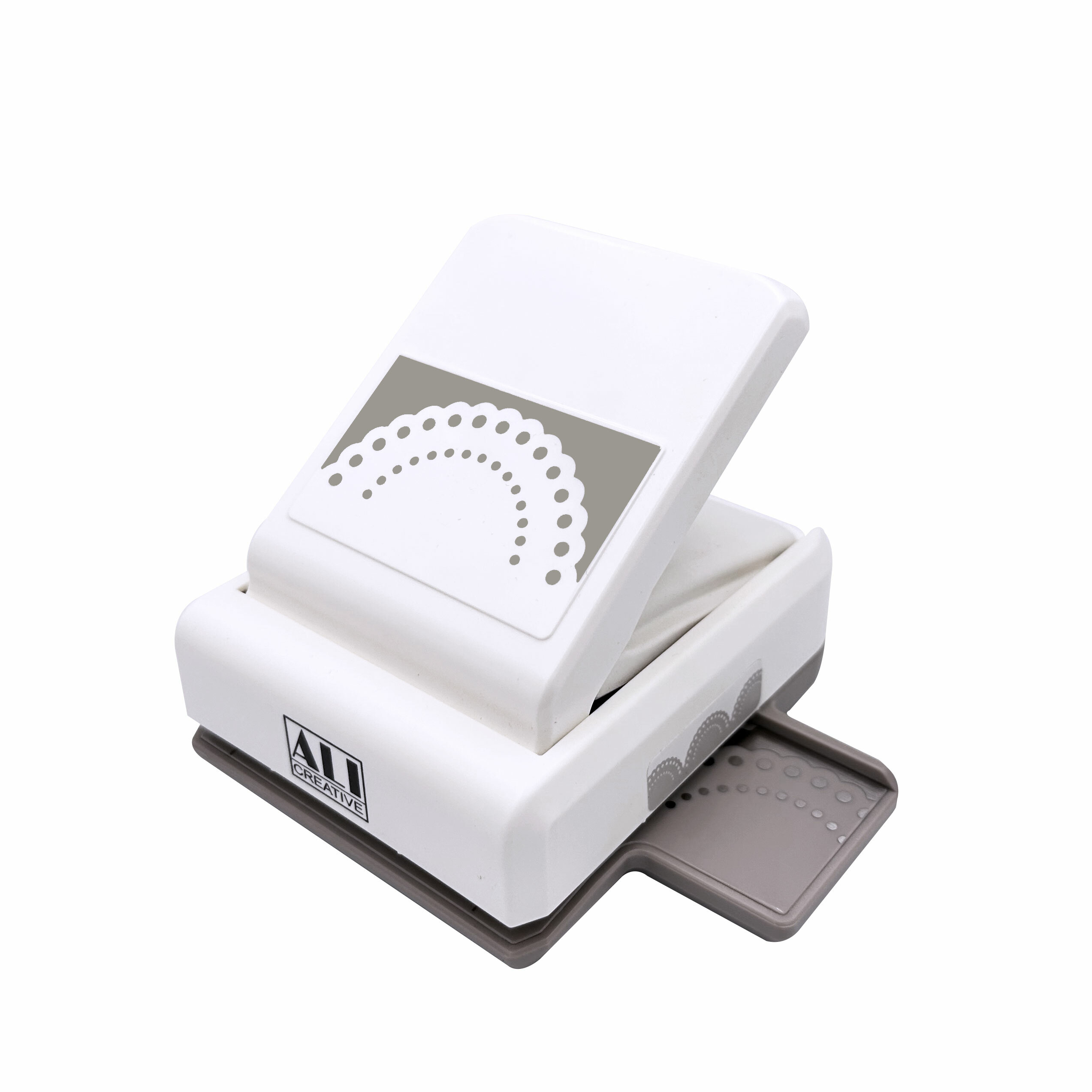 2.將紙張置入打孔器,確定紙張完全貼近打孔器底部的尺規。按壓打出第一組圖案後,